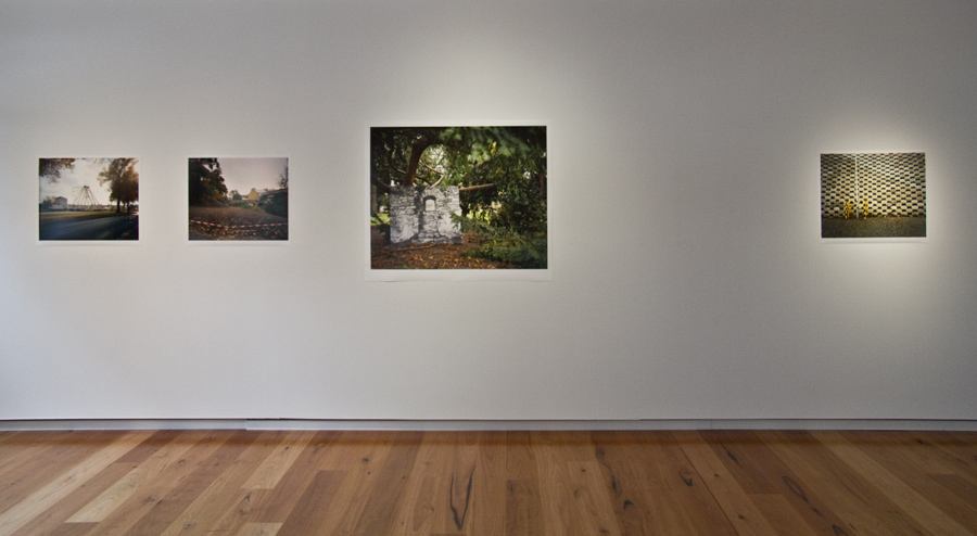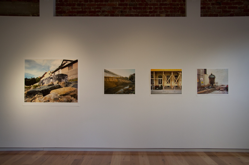 Featured in the gallery’s smaller display area are two of Voller’s earlier works: Raycroft 1 and Raycroft 2. Produced in New Zealand, amongst the detritus of the construction industry, these works, like the European photographs, draw attention to abandoned and forgotten places, and the shifting trends and cycles of the built environment. In the context of New Zealand, which experienced a rapid boom in housing prices in the 2000s, the works have a particular resonance, and intersect with concerns over land value, land use and the desires that drive the housing market. This work also shares with the images from the Constructing Site series a playful exploration of photography and its potential to produce confusions of scale, illusion and unexpected juxtapositions.