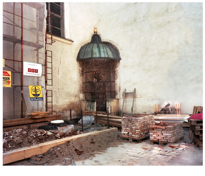 Constructing Site continues James Voller’s exploration of urban space through photography and site-specific installation. Produced in Austria, the Czech Republic and Germany, Voller’s photographic paste-ups physically layer images of ruins over existing sites in the urban environment. The resulting photographs of these interventions produce a complex image that reflects on both the construction of the urban environment and on the constructed nature of the photographic image itself. Photography in Voller’s work both preserves and constructs place.