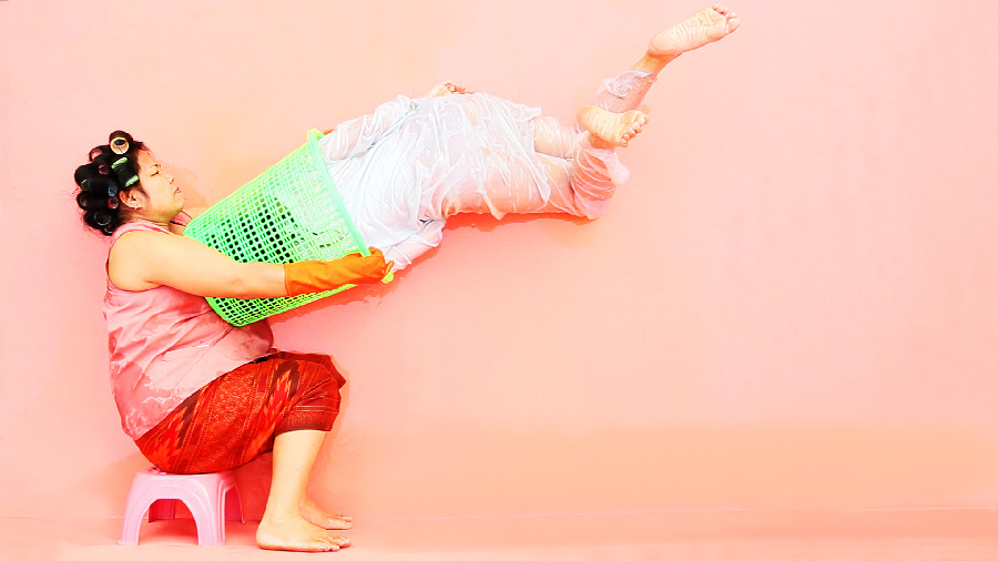 Beam Contemporary is excited to present, Play, a suite of new video works by Kawita Vatanajyankur. These bold performance-based videos continue Vatanajyankur’s exploration of the domestic environment. Set against intensely bright and colourful backdrops, the videos entangle objects and bodies in ways that are uncanny, humorous and often disturbing.