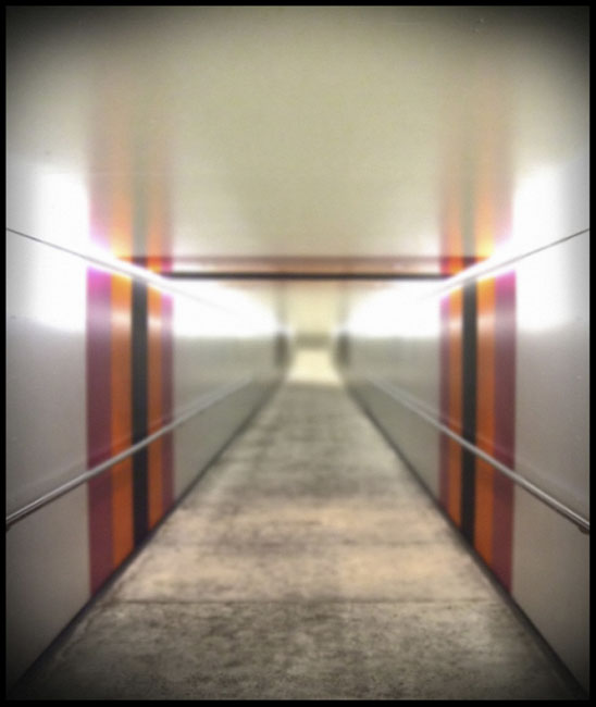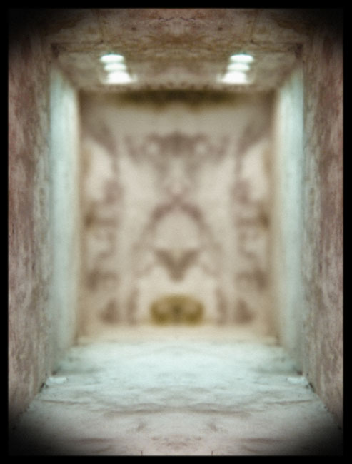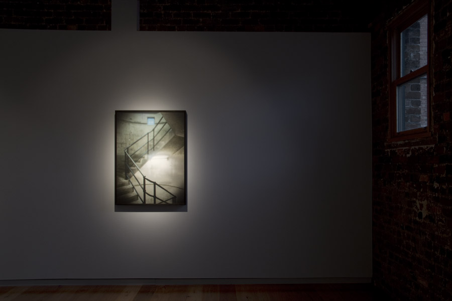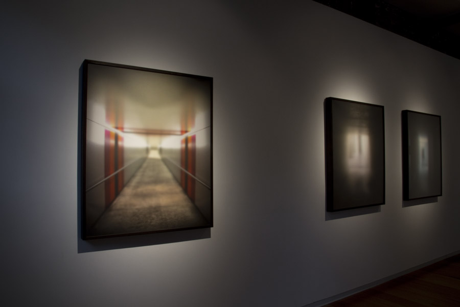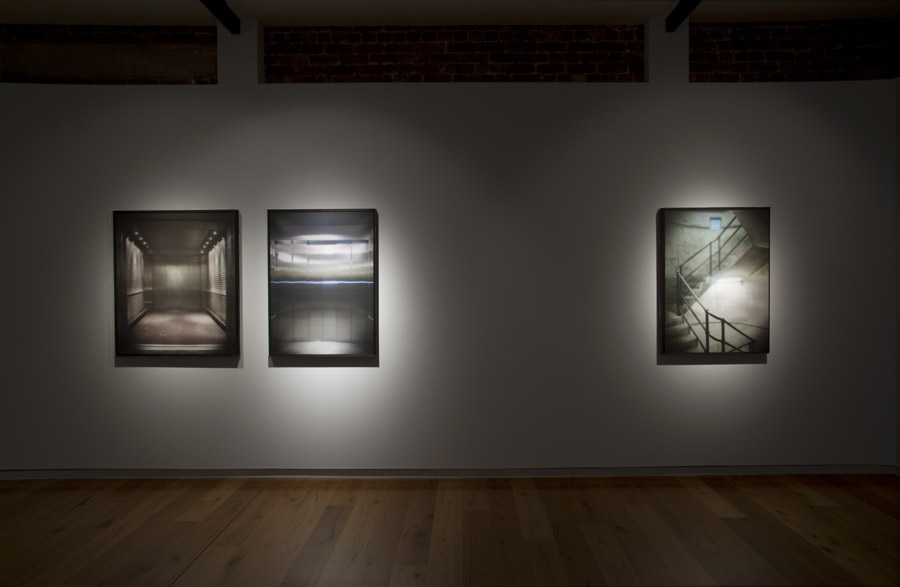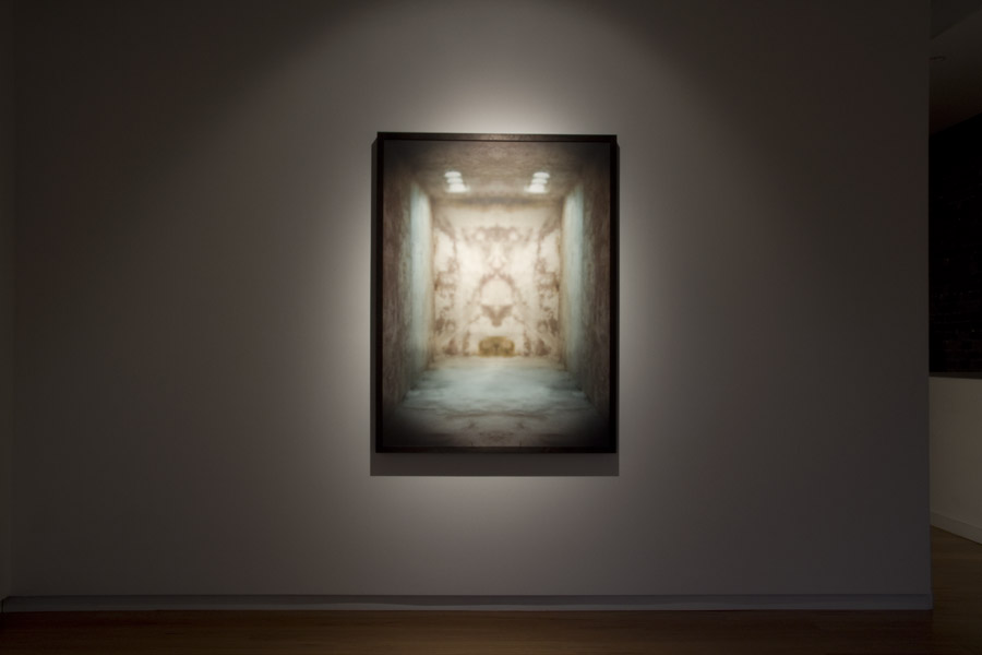 Industrial Zen presents a series of symmetrical, three dimensional spaces, each work drawing the viewer into its centre, a hypnotising void. For this exhibition Kim Demuth develops his practice of digital and material manipulation of photographs, this time to investigate synthetic interiors. These industrial spaces take on new meanings as they are rendered in terms of the compositional arrangement of colours and shapes. In this way the works nod to the influence of Zen Buddhism in abstract expressionism, creating an antithetical dynamic between photographic evidence and painterly representation.