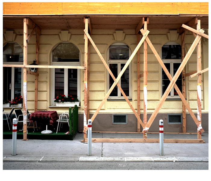 Constructing Site continues James Voller’s exploration of urban space through photography and site-specific installation. Produced in Austria, the Czech Republic and Germany, Voller’s photographic paste-ups physically layer images of ruins over existing sites in the urban environment. The resulting photographs of these interventions produce a complex image that reflects on both the construction of the urban environment and on the constructed nature of the photographic image itself. Photography in Voller’s work both preserves and constructs place.