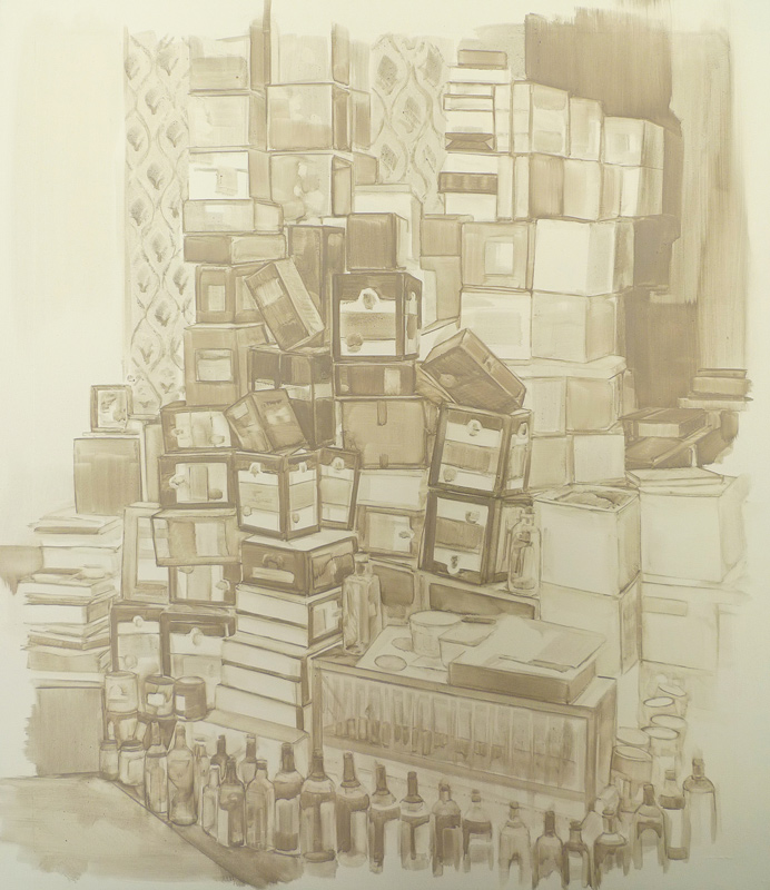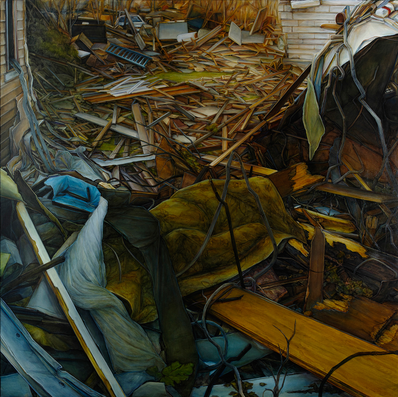 In To Have and To Hold, represented artist Karla Marchesi finds abandoned spaces and discarded objects and treats them with all the reverence of a traditional still life. These scenes of detritus are translated into objects of contemplation via an intricate realist painting style. The work also explores the potentially abstract qualities of these objects as they are transformed via their accumulation into amorphous piles. Throughout this series of paintings we are compelled to pause and meditate on these objects, how they occupy space, inform us of the past and construct identities.