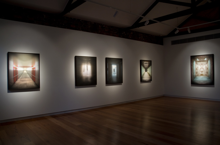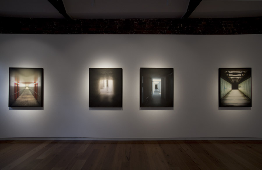 Industrial Zen presents a series of symmetrical, three dimensional spaces, each work drawing the viewer into its centre, a hypnotising void. For this exhibition Kim Demuth develops his practice of digital and material manipulation of photographs, this time to investigate synthetic interiors. These industrial spaces take on new meanings as they are rendered in terms of the compositional arrangement of colours and shapes. In this way the works nod to the influence of Zen Buddhism in abstract expressionism, creating an antithetical dynamic between photographic evidence and painterly representation.