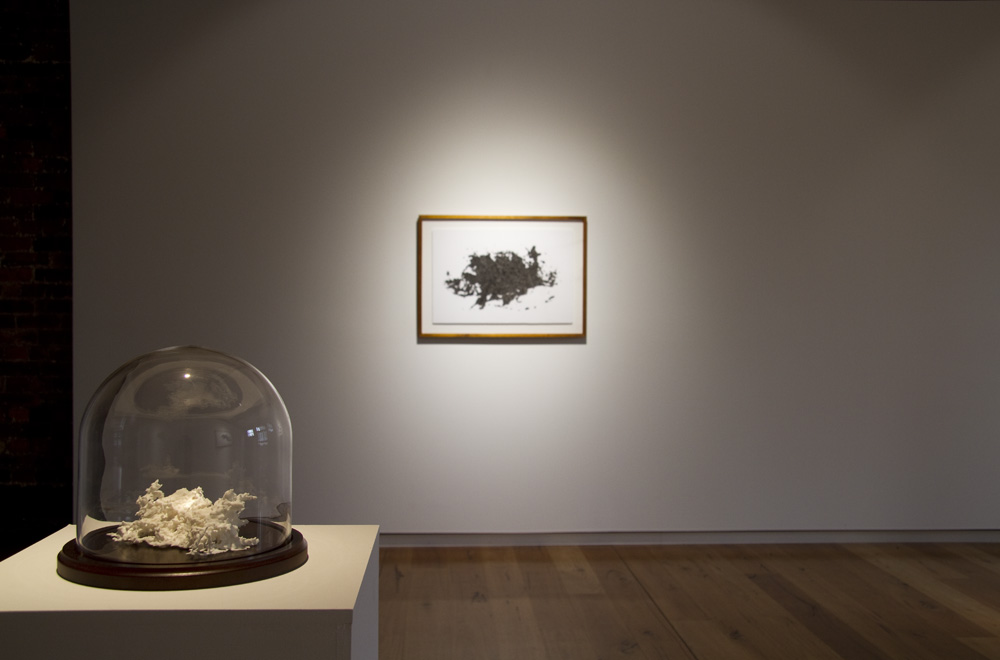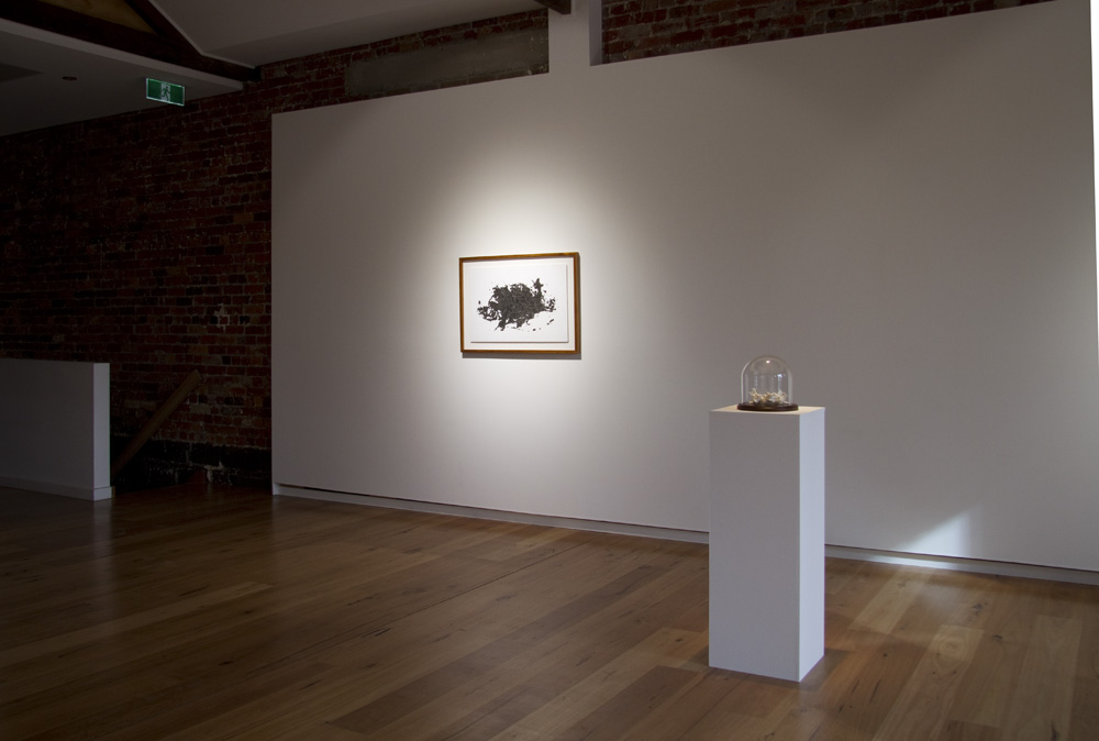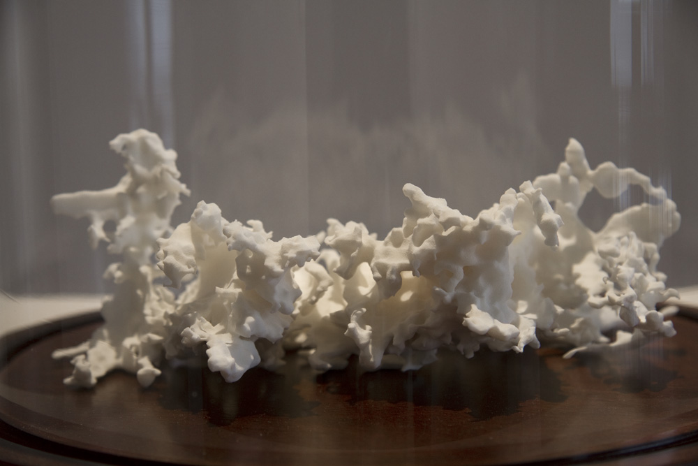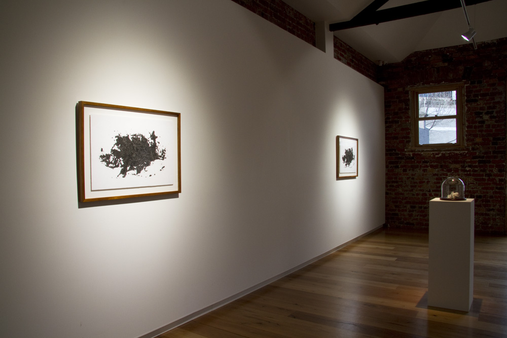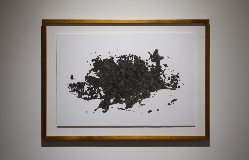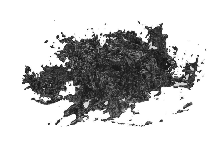Simon Finn’s new body of complex works are fragments of a simulated tsunami event; a Synthetic Surge. These works continue Finn’s studio-based research into drawing and its connection to digital technologies. Finn uses the sequential images produced by these technologies as preliminary sketches which he extrapolates into a variety of mediums in order to explore spatial and temporal imagery. Synthetic Surge is a collection of meticulous charcoal drawings, digital animation and optical sculptures that reveal the water element of the tsunami event: the devastating virtual force behind the destruction represented in previous works by Finn, such as Pier Collapse Stage 1 (2011). Here, a Synthetic Surge pushes its way through Finn’s process of image construction combining two opposing aspects, detailed systematic assemblage and the concept of destruction. This simultaneous motioning towards assemblage and destruction allows Finn to question notions of temporal sequence and spatial simulation.