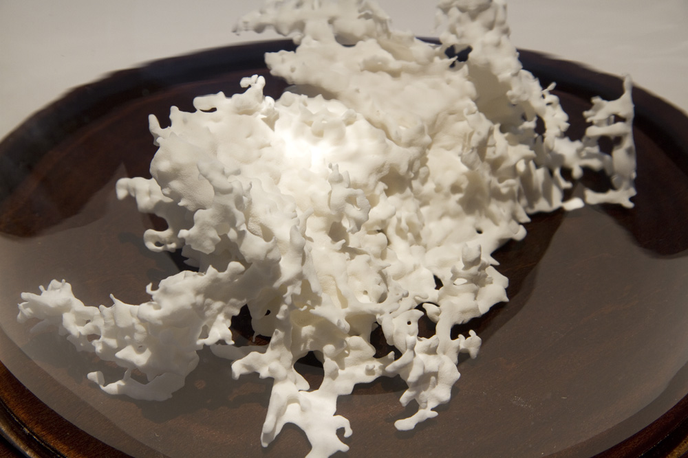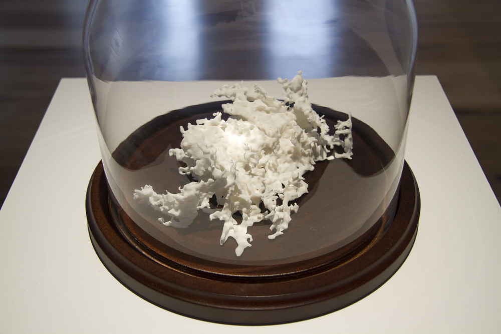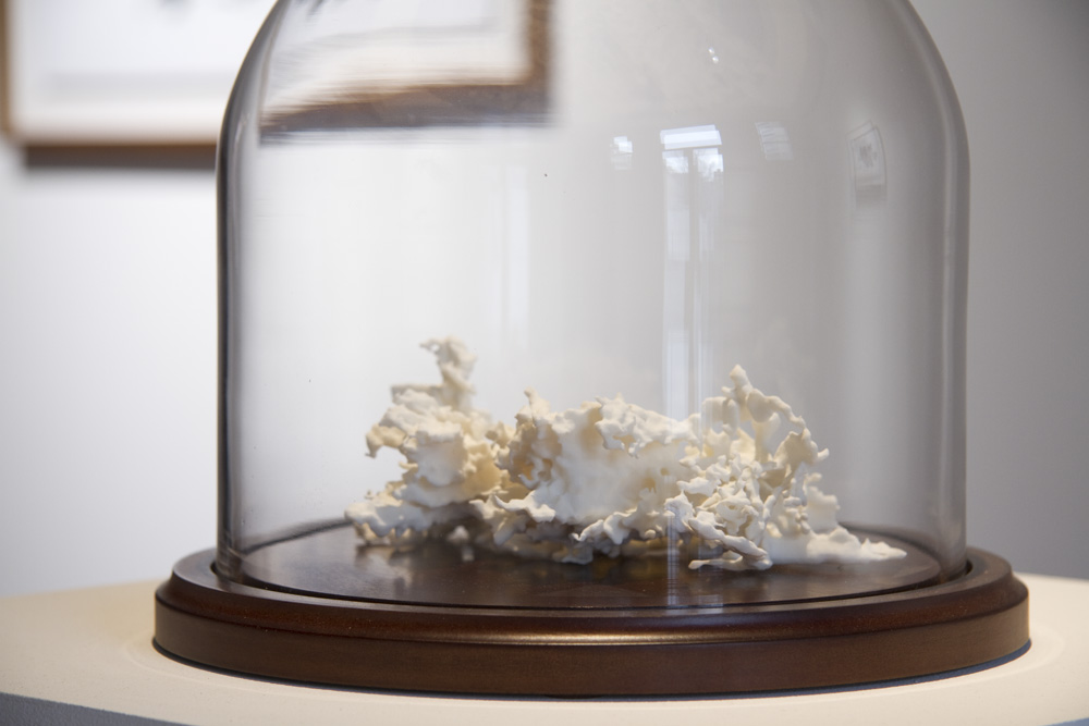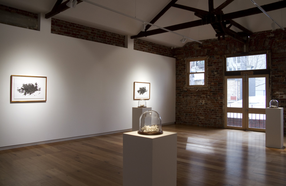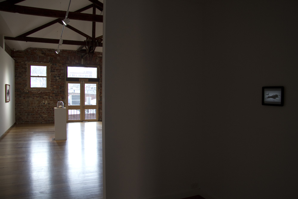 Simon Finn’s new body of complex works are fragments of a simulated tsunami event; a Synthetic Surge. These works continue Finn’s studio-based research into drawing and its connection to digital technologies. Finn uses the sequential images produced by these technologies as preliminary sketches which he extrapolates into a variety of mediums in order to explore spatial and temporal imagery. Synthetic Surge is a collection of meticulous charcoal drawings, digital animation and optical sculptures that reveal the water element of the tsunami event: the devastating virtual force behind the destruction represented in previous works by Finn, such as Pier Collapse Stage 1 (2011). Here, a Synthetic Surge pushes its way through Finn’s process of image construction combining two opposing aspects, detailed systematic assemblage and the concept of destruction. This simultaneous motioning towards assemblage and destruction allows Finn to question notions of temporal sequence and spatial simulation.